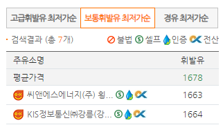 이 휴게소 판매하고 있는 주유 가격의 최저가를 알아보았습니다.