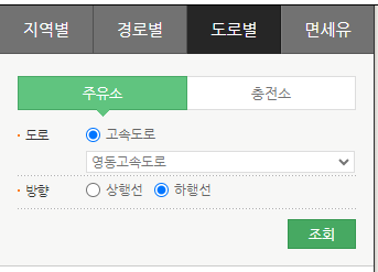 1. 영동고속도로 휴게소 주유소 고급휘발유 휘발유 경유 최저가 기름값 가격 실시간 확인 방법