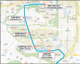 양주시 율정마을7,8단지 → 제일풍경채레이크시티.율정마을13단지 → 옥정상가주택.대방노블랜드12단지 → 연푸른초교.한신더휴.e편한세상19단지 → 덕현초교.덕고개 → 도봉산역광역환승센터