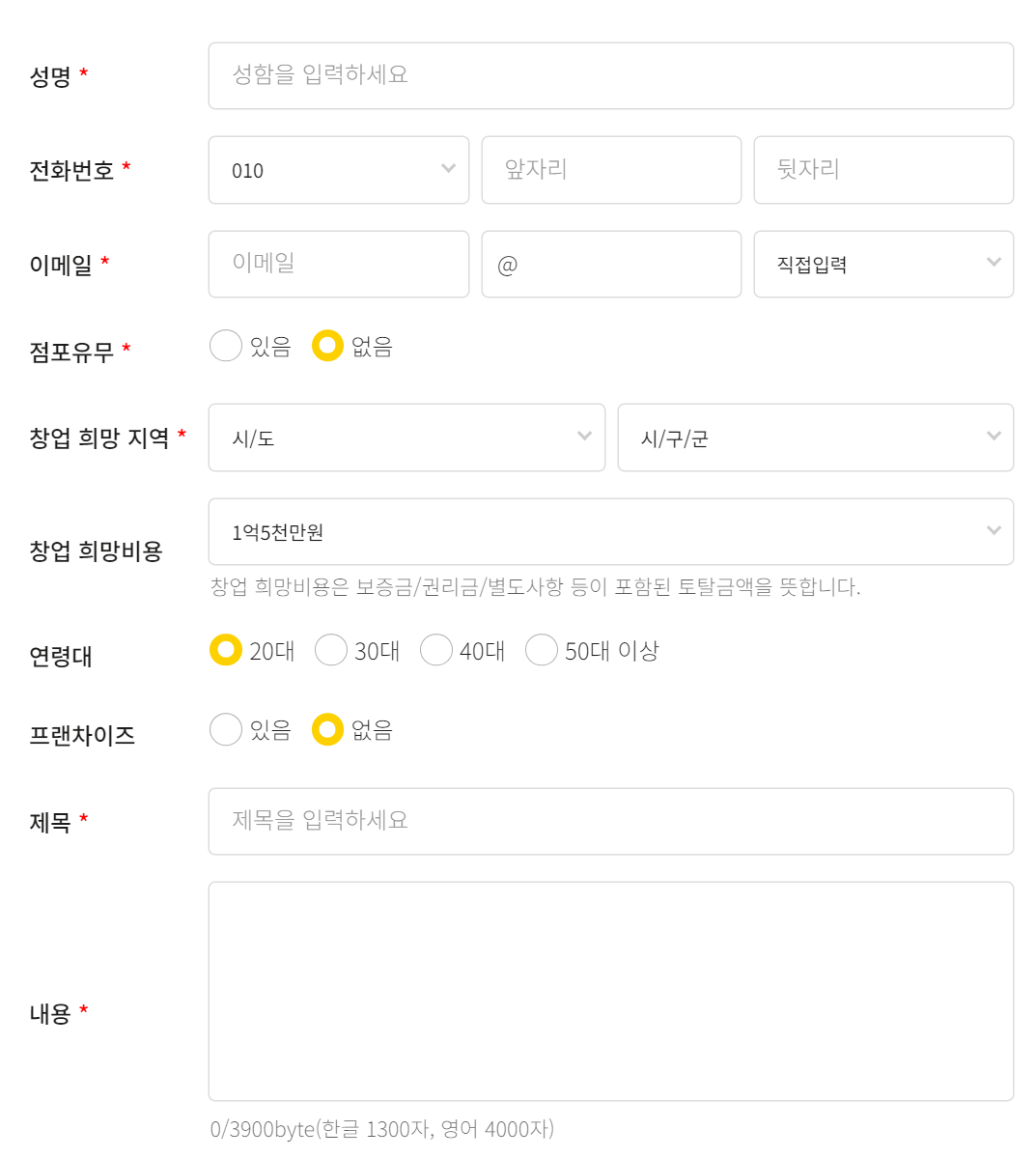 내용: 유니폼, 매뉴얼 교육 및 점포 운영에 관한 교육, 현장 실습비