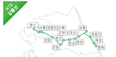 서울과 강릉 동해 사이를 운행하는 KTX 열차에 대하여 알려드리도록 하겠습니다.