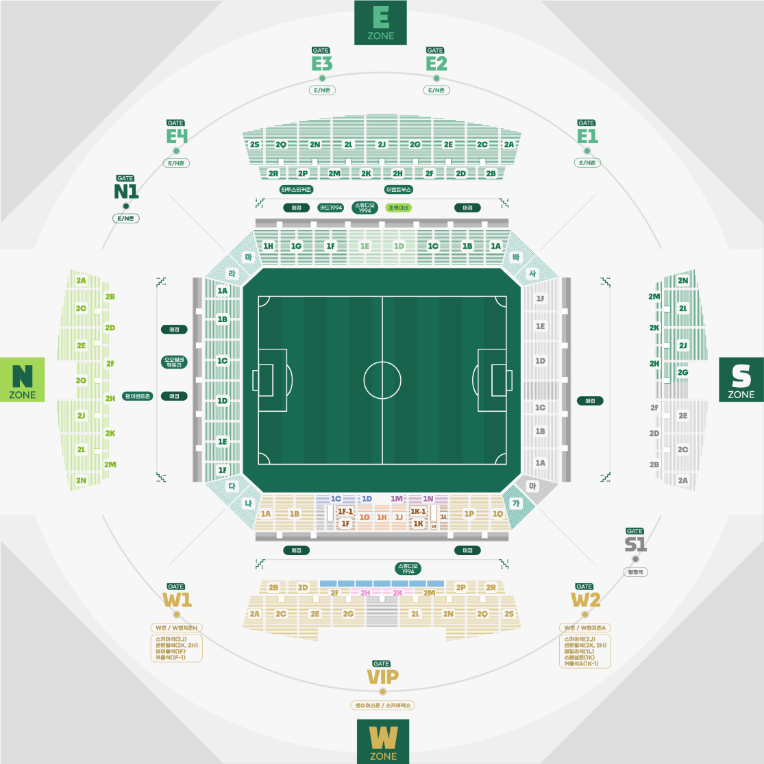 다음에는 전북 현대 홈경기장 전주월드컵 경기장 좌석 배치 정보를 알려드립니다.