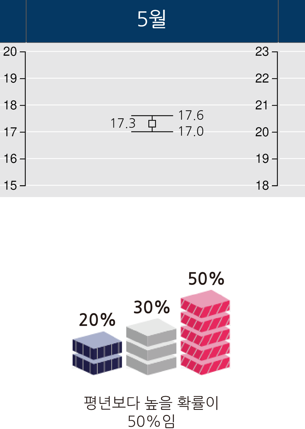 -(월평균기온) 평년(17.7~18.3℃)보다 높을 확률이 50%임