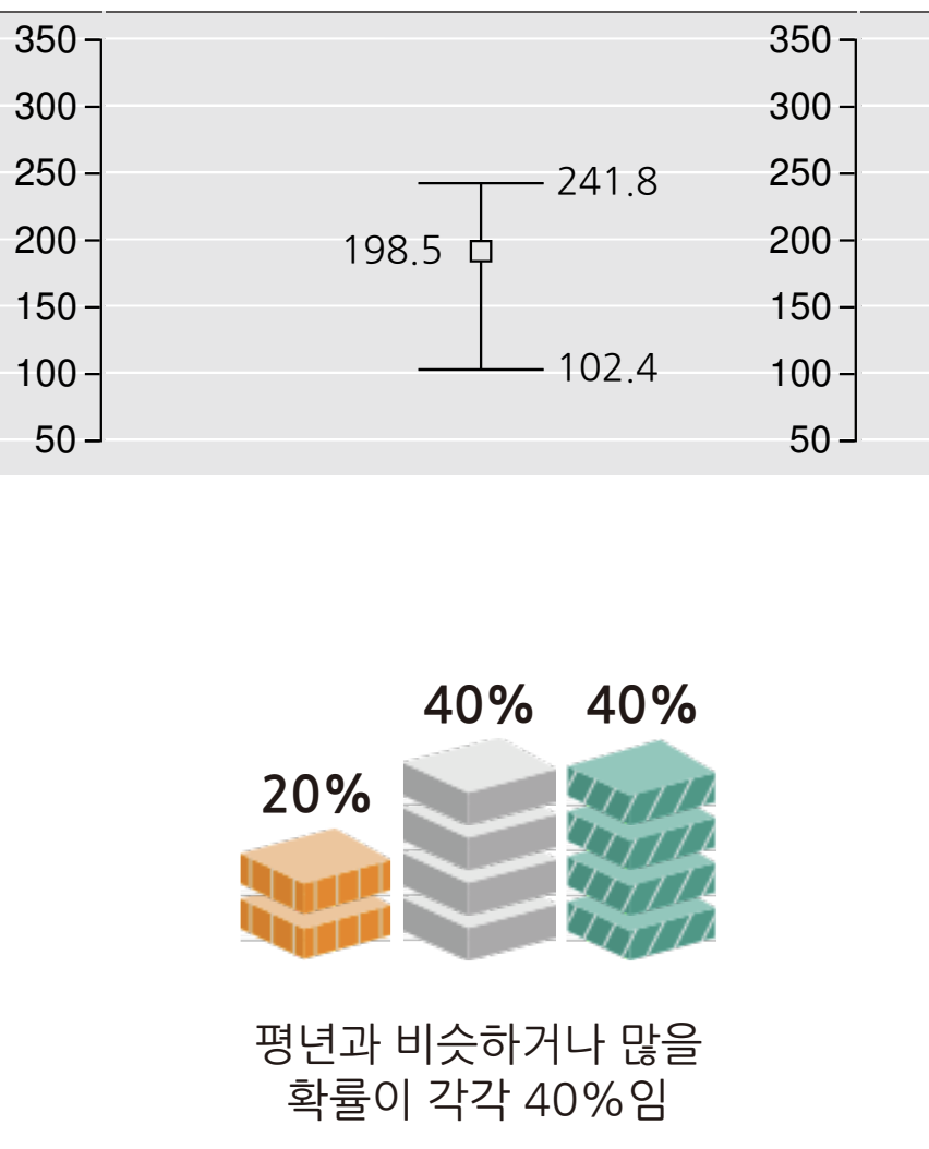-평균 강수량 범위 102.4㎜ ~ 241.8㎜와 비슷할 가능성 40%