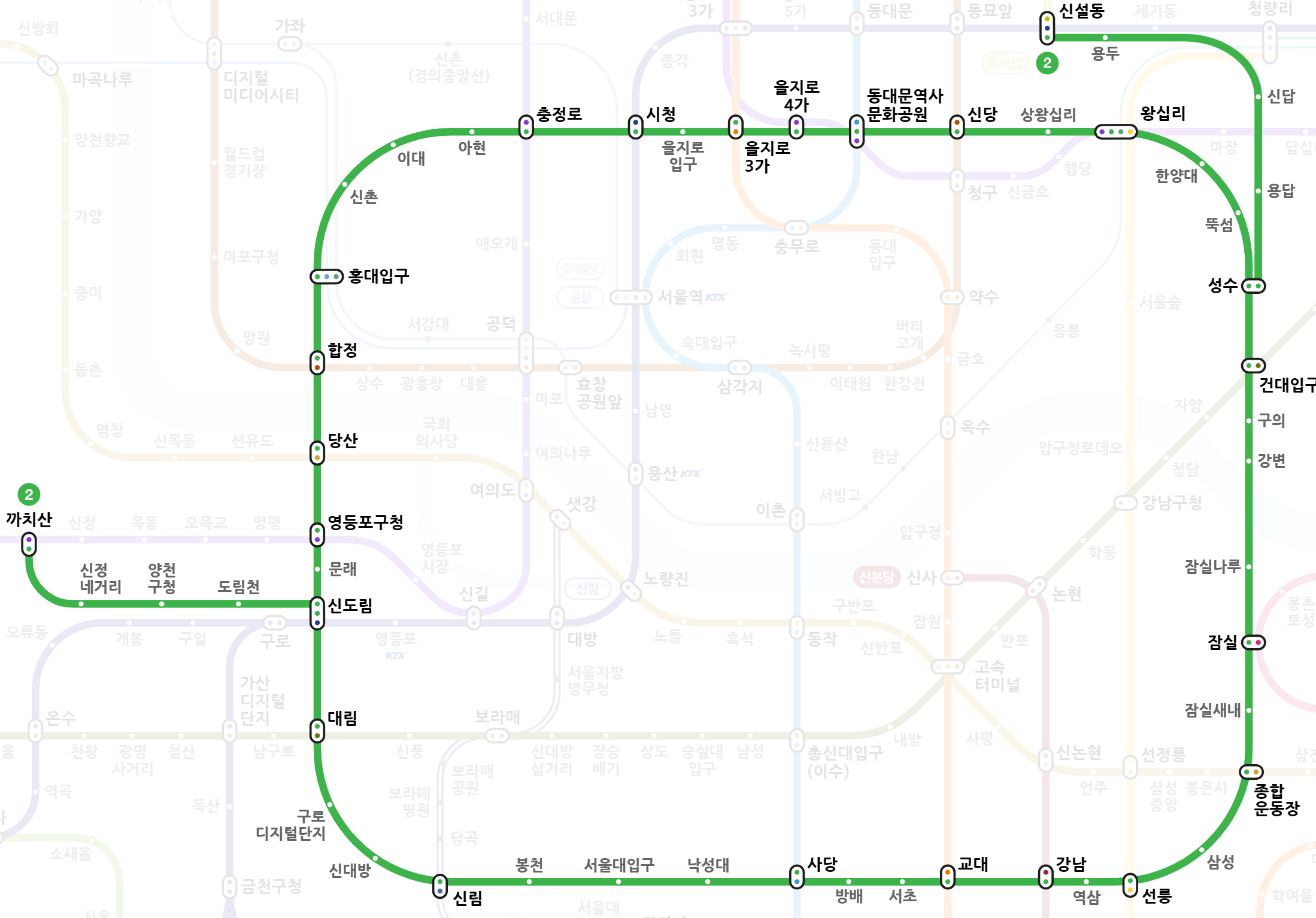 서울 2호선 지하철역 승하차 승객 이용객 많은 역 순위와 인원 등을 알아보았습니다.