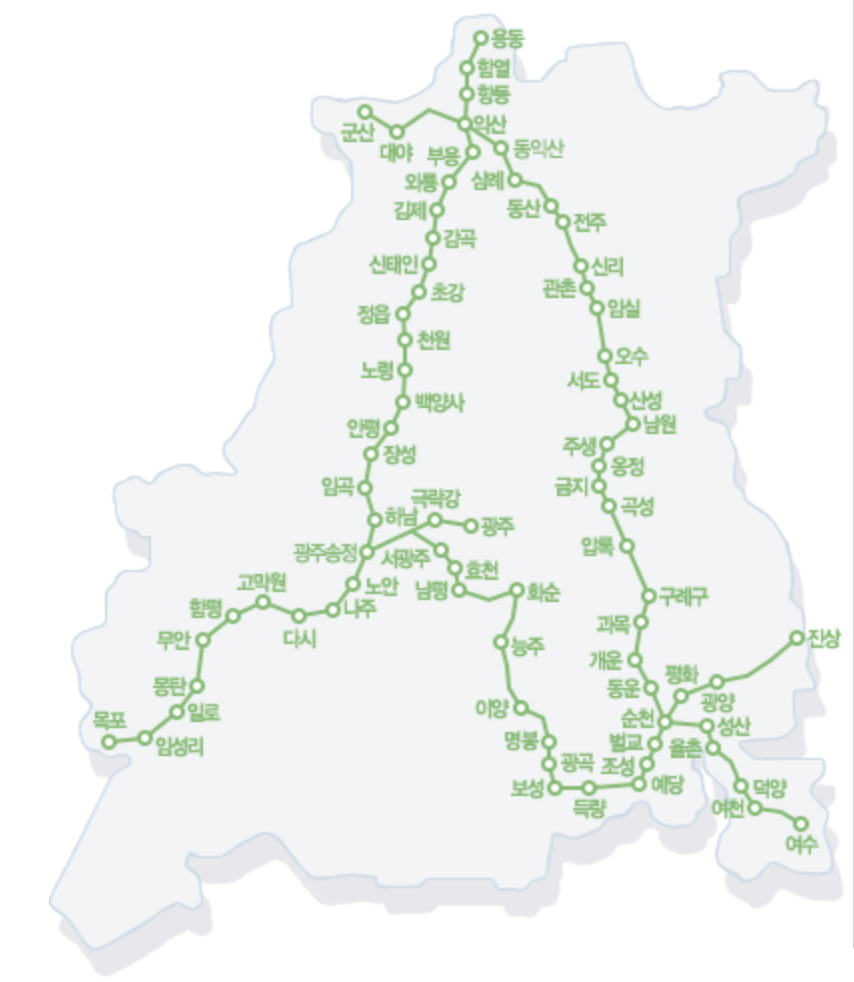 광주송정역-순천역 열차 노선도