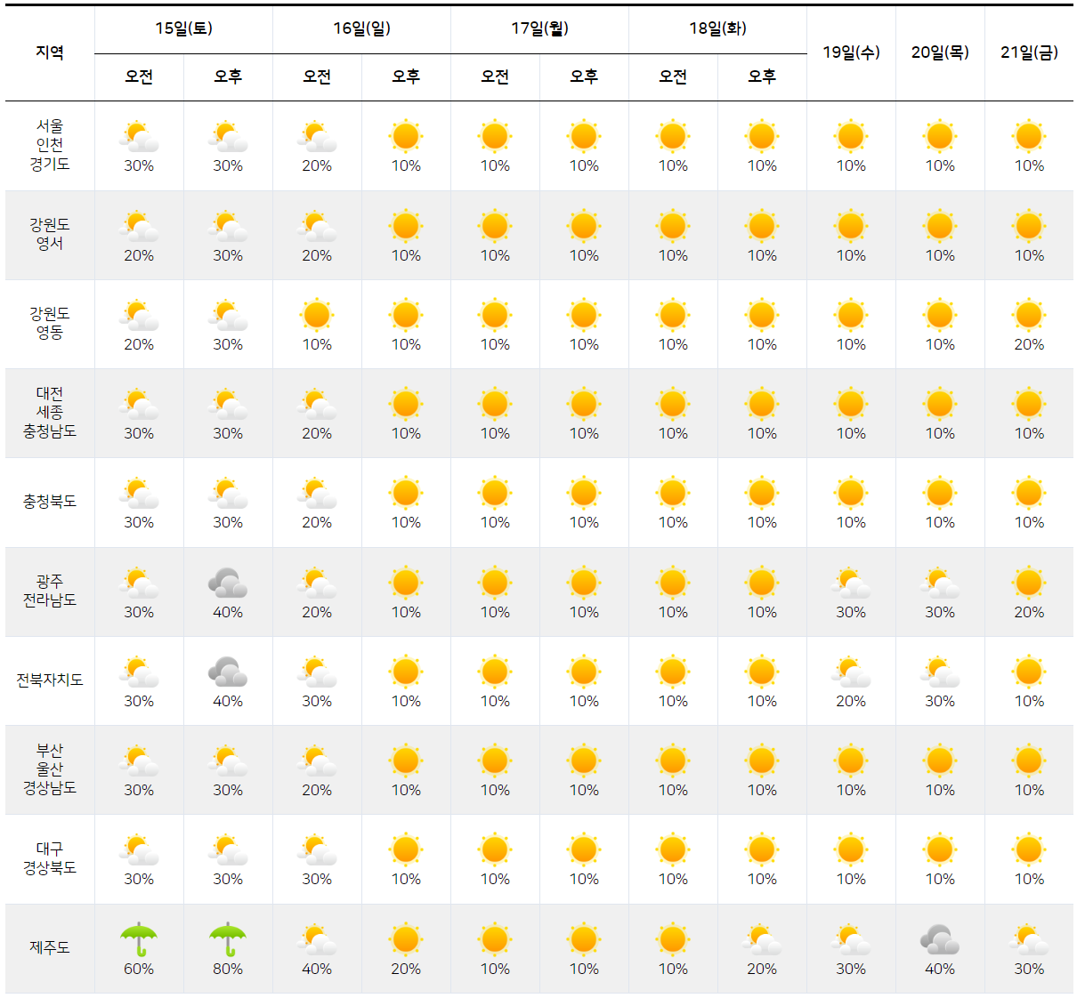이 글에서 안내하는 날씨 정보는 기상청 날씨누리 홈페이지에 게시된 예보 자료를 활용하여 작성하였습니다.