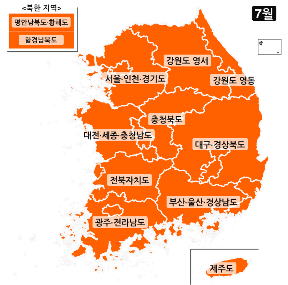 2025년 7월 한 달 전국 날씨 예보 지역별 기온과 강수량 확률 전망을 알아보았습니다.