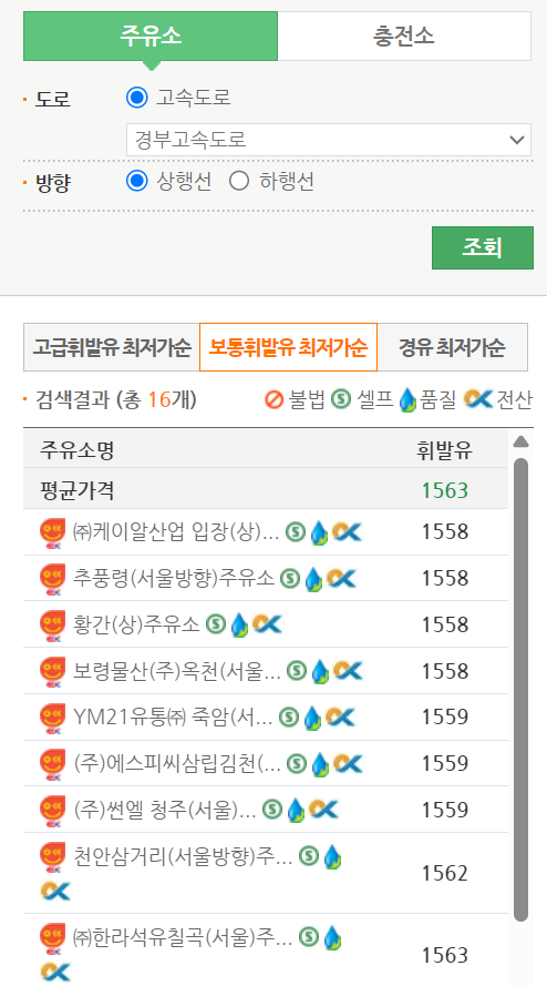 - 경부선 상행 경유 최저가 주유소(부산→서울)