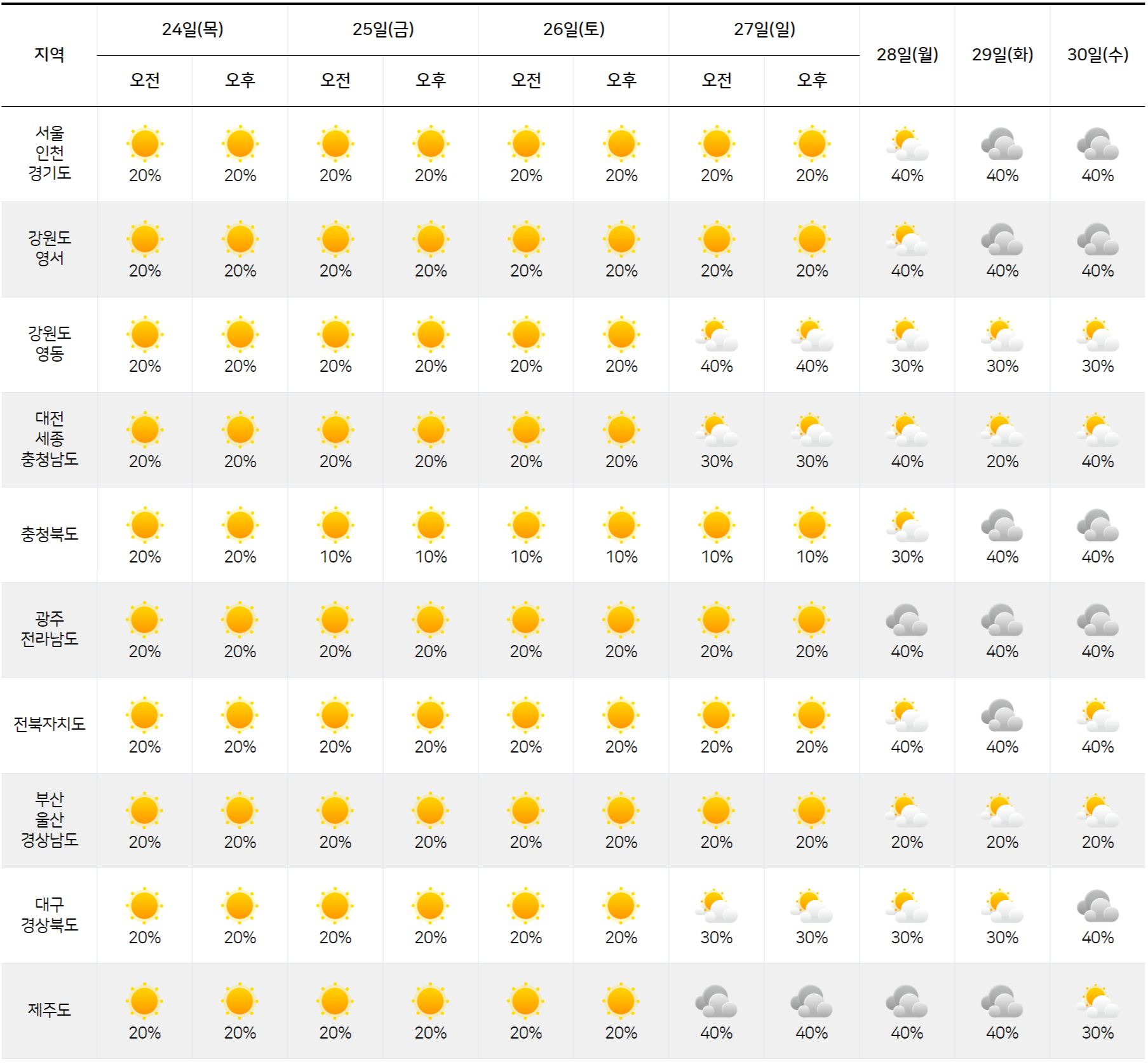 * 이번 예보기간 대체로 맑은 날이 많겠으나, 27일(일)~30일(수)은 구름 많거나 대체로 흐리겠습니다.