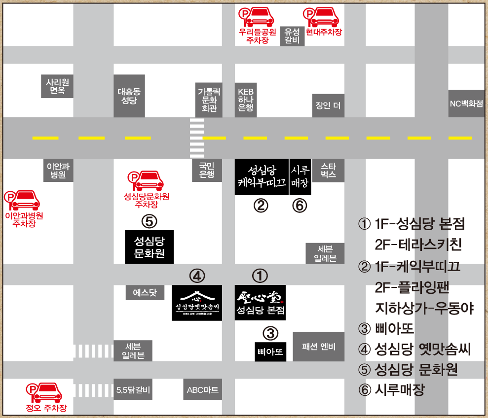 이 글은 성심당 홈페이지에서 안내하고 있는 정보를 정리하고, 네이버지도 도움을 받아 좀 더 자세하게 알려드리는 것입니다.
