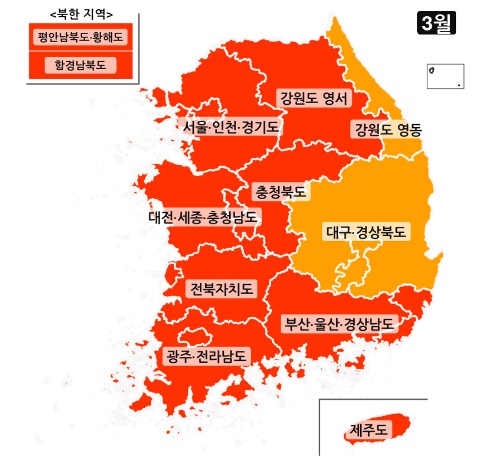 - 평년 3월 기온보다 높을 것으로 예보되었습니다.