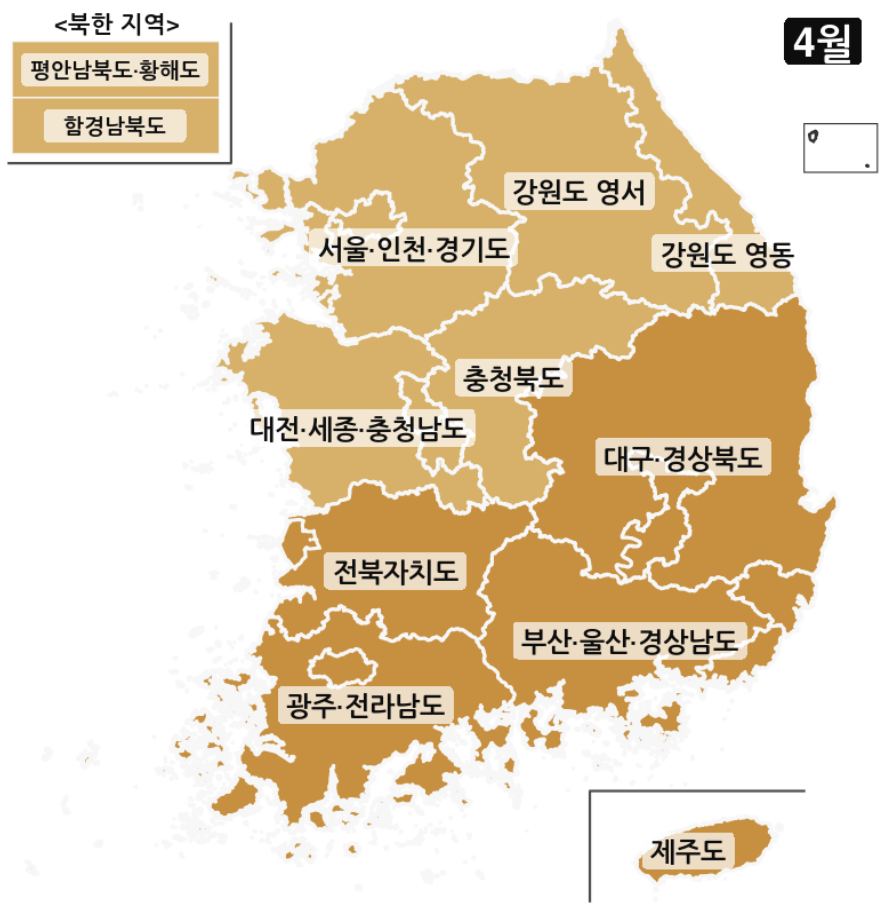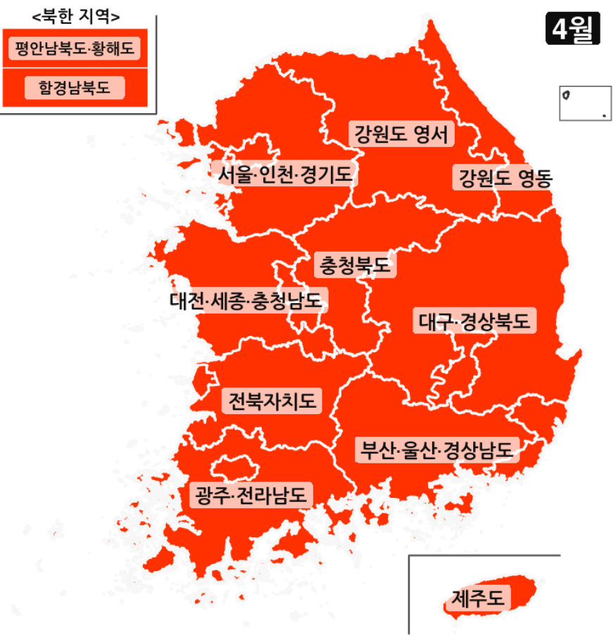 다만 제가 작성한 글은 4월 한달 지역별 날씨 예보의 주요 핵심적인 내용이 정리되어 있으므로 이 글을 보시는 것을 추천드립니다.